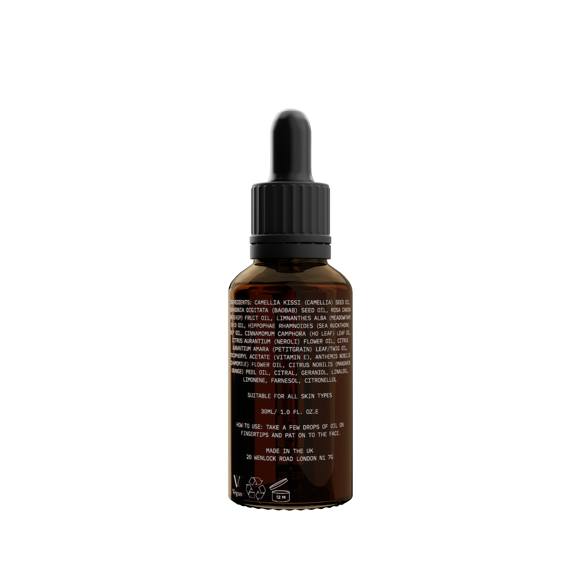 Camellia Kissi (Camellia) Seed Oil, Adansonia Digitata (Baobab) Seed Oil, Rosa Canina (Rosehip) Fruit Oil, Limnanthes Alba (Meadowfoam) Seed Oil, Hippophae Rhamnoides (Sea Buckthorn) Oil, Citrus Aurantium Amara (Petitgrain) Oil, Cinnamomum Camphora (Ho Wood) Oil, Citrus Aurantium (Neroli) Oil, Anthemis Nobilis (Chamomile) Flower Oil, Citrus Nobilis (Mandarin) Oil, Tocopheryl Acetate (Vitamin E)